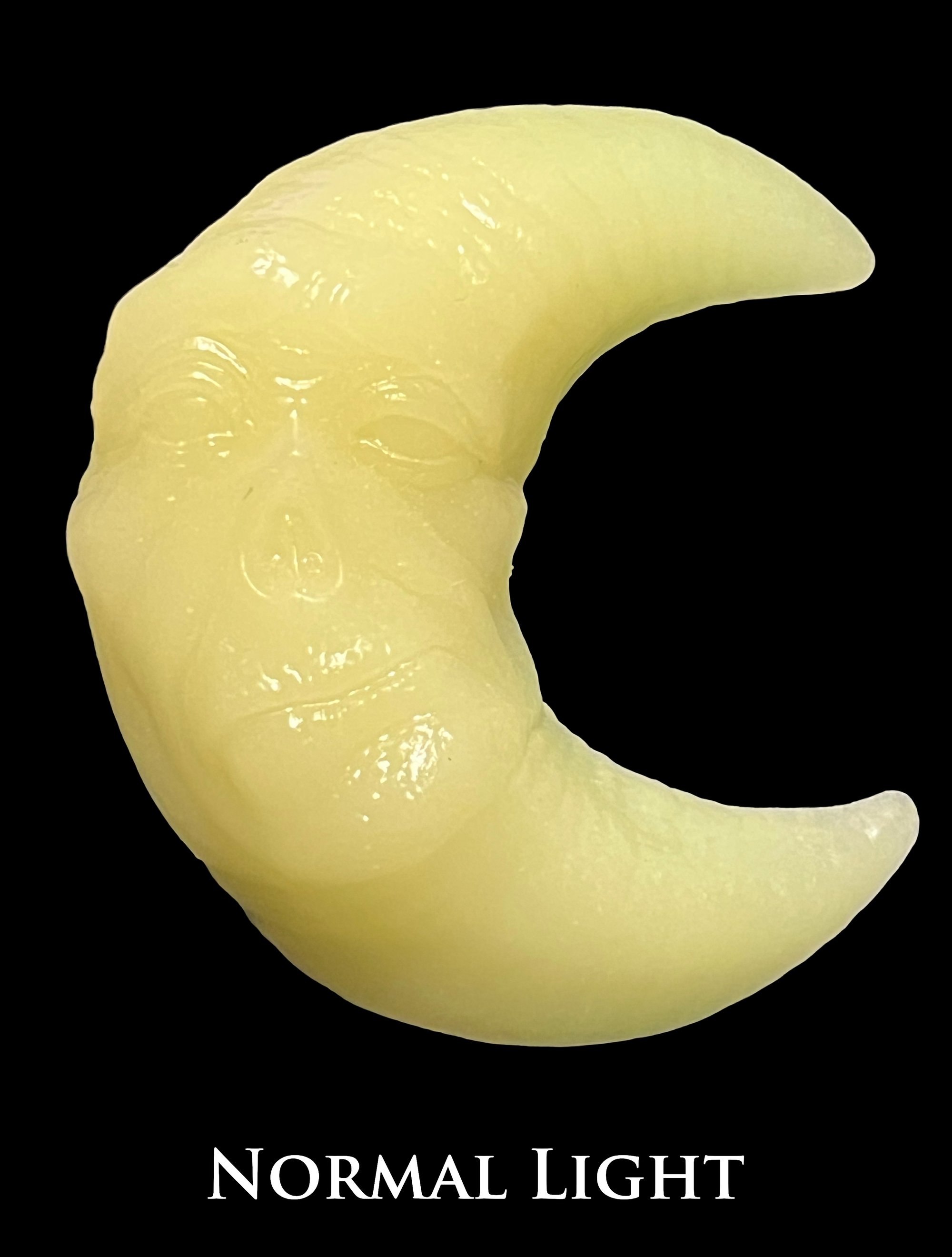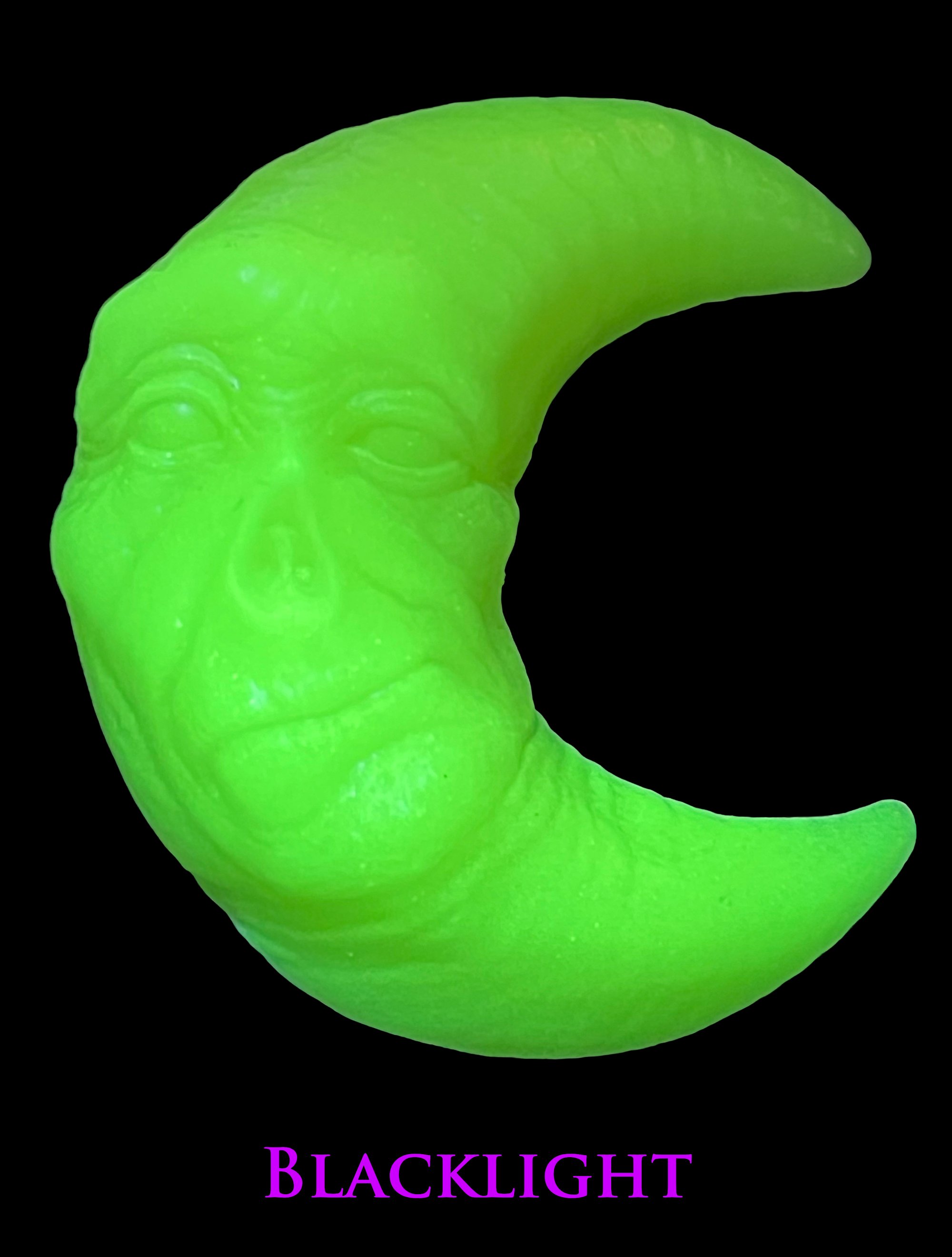 These Moon wall hanging sculptures are a unique combo of digital artistry and traditional hand casting. Molded from one of my first digital 3d printed sculptures, these one of a kind, unusually colored urethane sculptures contain an embedded LED light that turns on and off! Resin is also cast using glow in the dark and UV powders (see pics).