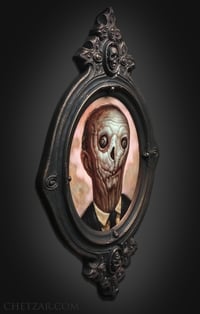 Hand cast, hand painted custom frame made of shatter resistant urethane resin. This is cast from the same mold that was created for "The Fear" paintings.